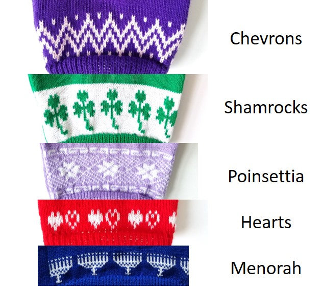 This doll wears a custom knit dress that is personalized with the little girls name. You can choose the dress color from the drop down menu. I can add a trim pattern along the bottom of the dress. Please choose the pattern from the drop down menu. I have hearts, flowers, chevrons, poinsettia and mennorah.